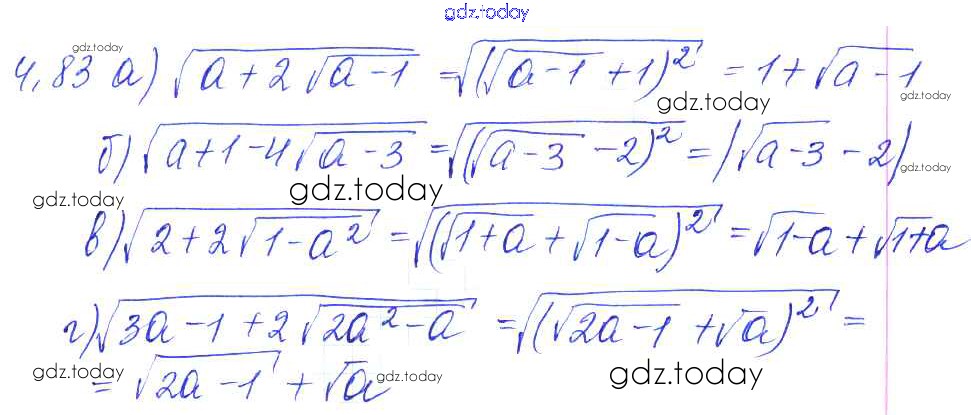 Ответы к Решение к параграфам 4. Квадратные корни 4.83 Сборнику задач по Алгебре для 8 класса Галицкий, Гольдман Просвещение 2019