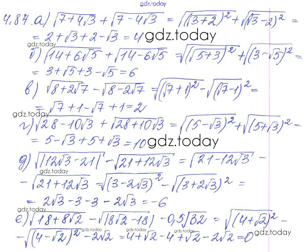Ответы к Решение к параграфам 4. Квадратные корни 4.84 Сборнику задач по Алгебре для 8 класса Галицкий, Гольдман Просвещение 2019