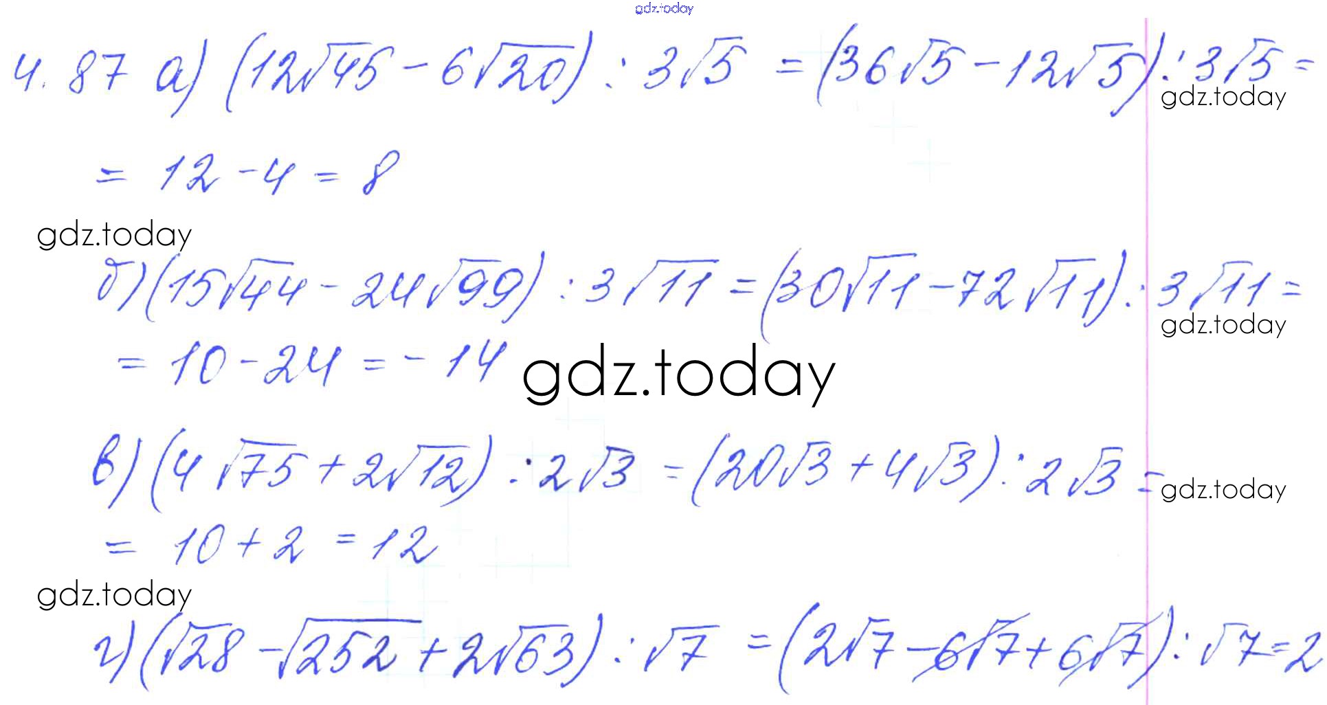 Ответы к Решение к параграфам 4. Квадратные корни 4.87 Сборнику задач по Алгебре для 8 класса Галицкий, Гольдман Просвещение 2019
