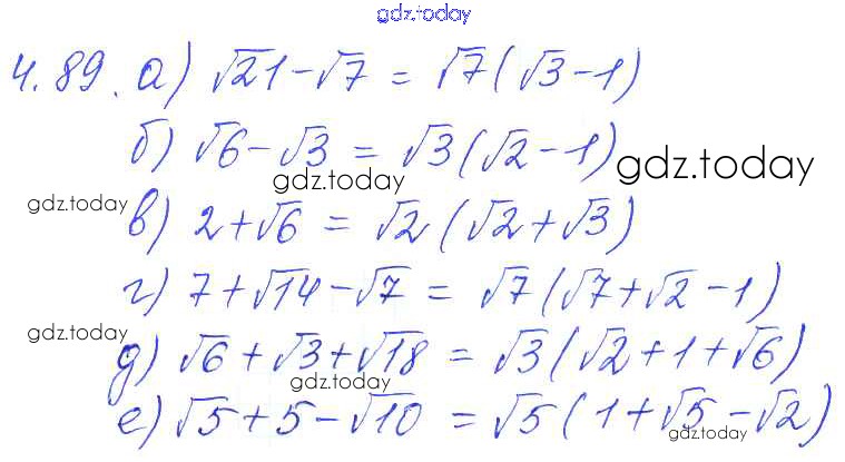 Ответы к Решение к параграфам 4. Квадратные корни 4.89 Сборнику задач по Алгебре для 8 класса Галицкий, Гольдман Просвещение 2019
