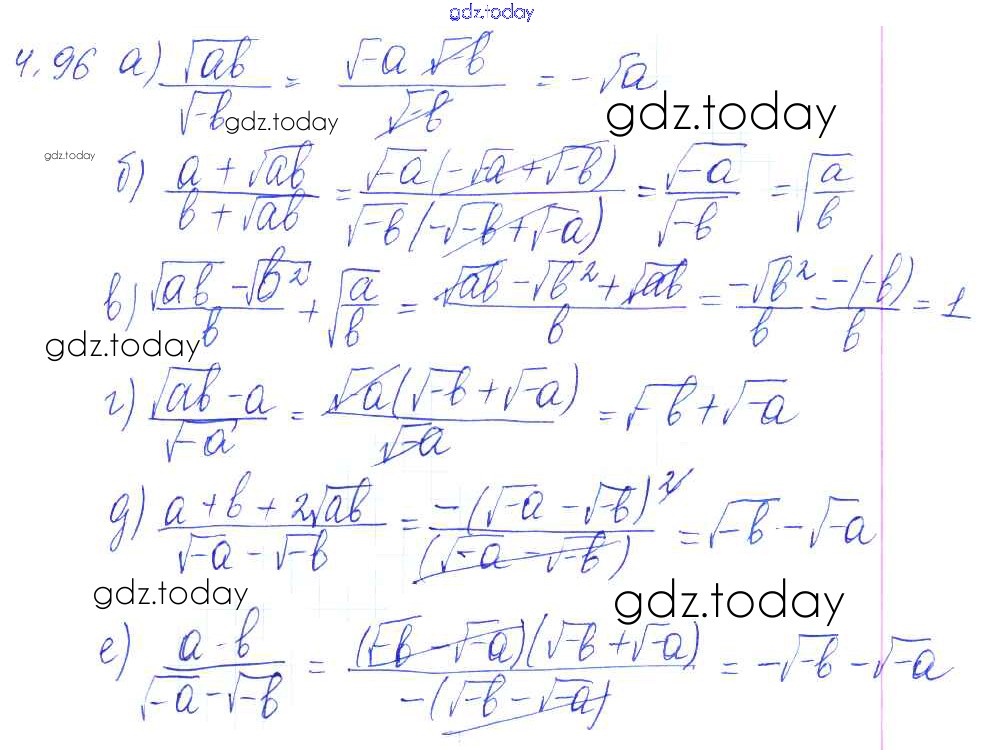 На страницах сайта gdz.today вы найдете учебный и вспомогательный материал, направленный на улучшения знаний школьной программы. ГДЗ - онлайн мир знаний Решение к параграфам 4. Квадратные корни 4.96 Сборнику задач по Алгебре для 8 класса Галицкий, Гольдман Просвещение 2019