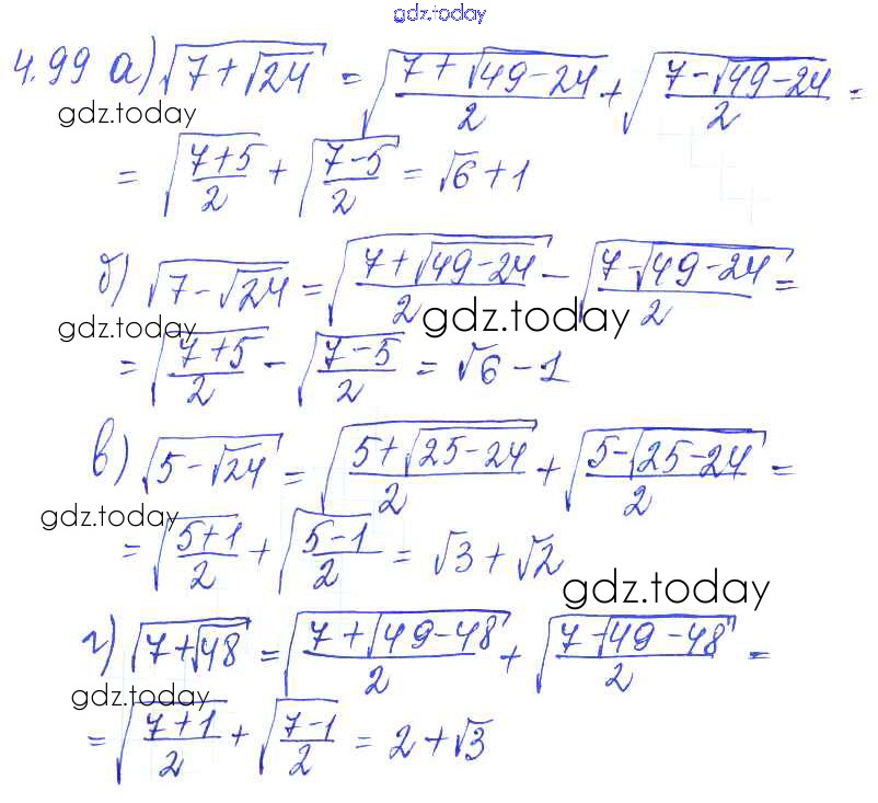 Ответы к Решение к параграфам 4. Квадратные корни 4.99 Сборнику задач по Алгебре для 8 класса Галицкий, Гольдман Просвещение 2019