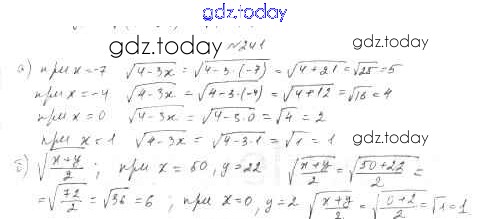 На страницах сайта gdz.today вы найдете учебный и вспомогательный материал, направленный на улучшения знаний школьной программы. ГДЗ - онлайн мир знаний Решение к упражнениям 241 Учебнику по Алгебре для 8 класса Дорофеев, Суворова Просвещение 2014
