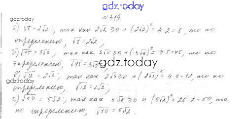 На страницах сайта gdz.today вы найдете учебный и вспомогательный материал, направленный на улучшения знаний школьной программы. ГДЗ - онлайн мир знаний Решение к упражнениям 319 Учебнику по Алгебре для 8 класса Дорофеев, Суворова Просвещение 2014