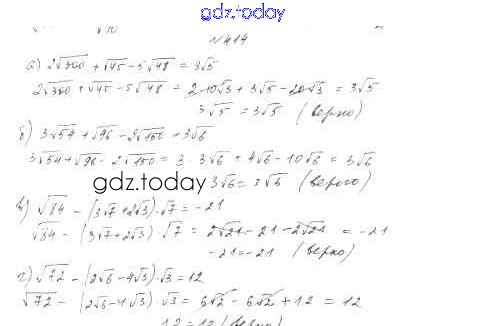 На страницах сайта gdz.today вы найдете учебный и вспомогательный материал, направленный на улучшения знаний школьной программы. ГДЗ - онлайн мир знаний Решение к упражнениям 414 Учебнику по Алгебре для 8 класса Дорофеев, Суворова Просвещение 2014
