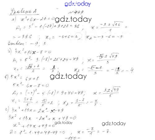 На страницах сайта gdz.today вы найдете учебный и вспомогательный материал, направленный на улучшения знаний школьной программы. ГДЗ - онлайн мир знаний Решение к упражнениям 449 Учебнику по Алгебре для 8 класса Дорофеев, Суворова Просвещение 2014