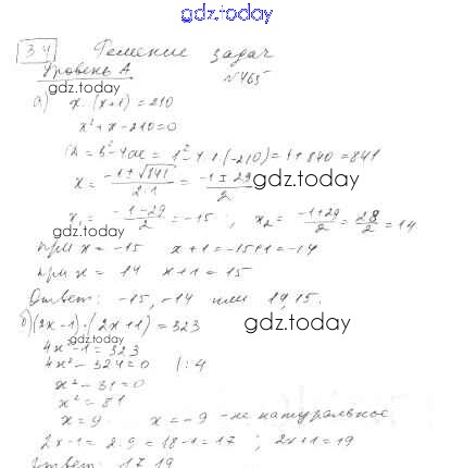 Ответы к Решение к упражнениям 465 Учебнику по Алгебре для 8 класса Дорофеев, Суворова Просвещение 2014