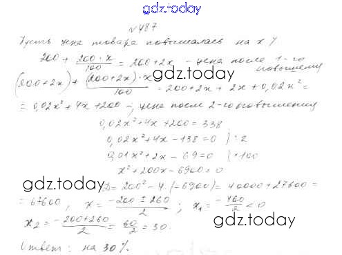 Ответы к Решение к упражнениям 487 Учебнику по Алгебре для 8 класса Дорофеев, Суворова Просвещение 2014