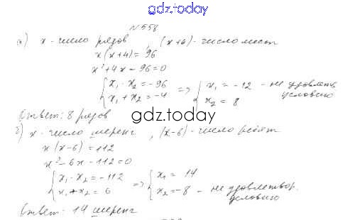 Ответы к Решение к упражнениям 558 Учебнику по Алгебре для 8 класса Дорофеев, Суворова Просвещение 2014