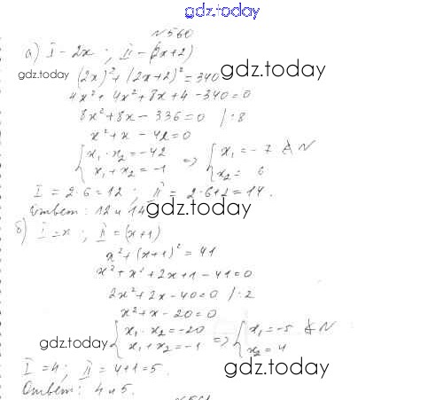 Ответы к Решение к упражнениям 560 Учебнику по Алгебре для 8 класса Дорофеев, Суворова Просвещение 2014