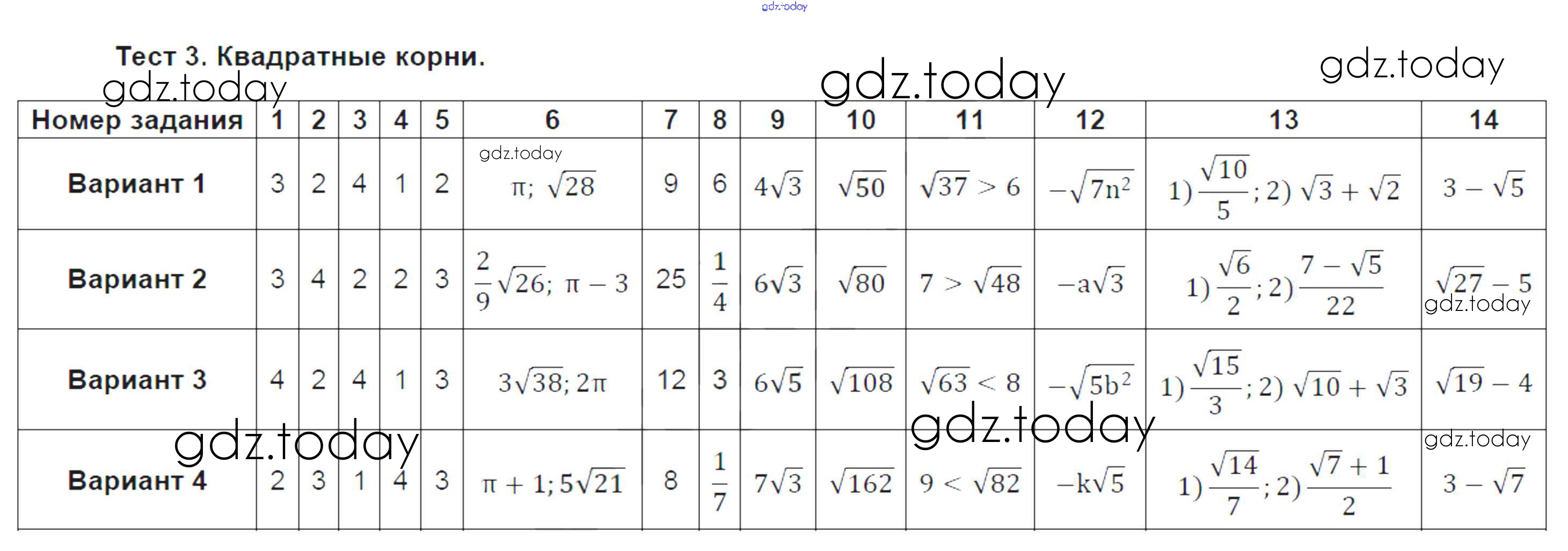 На страницах сайта gdz.today вы найдете учебный и вспомогательный материал, направленный на улучшения знаний школьной программы. ГДЗ - онлайн мир знаний Решение к тестам 3 Тематическим тестам по Алгебре для 8 класса Ткачева Просвещение 2018