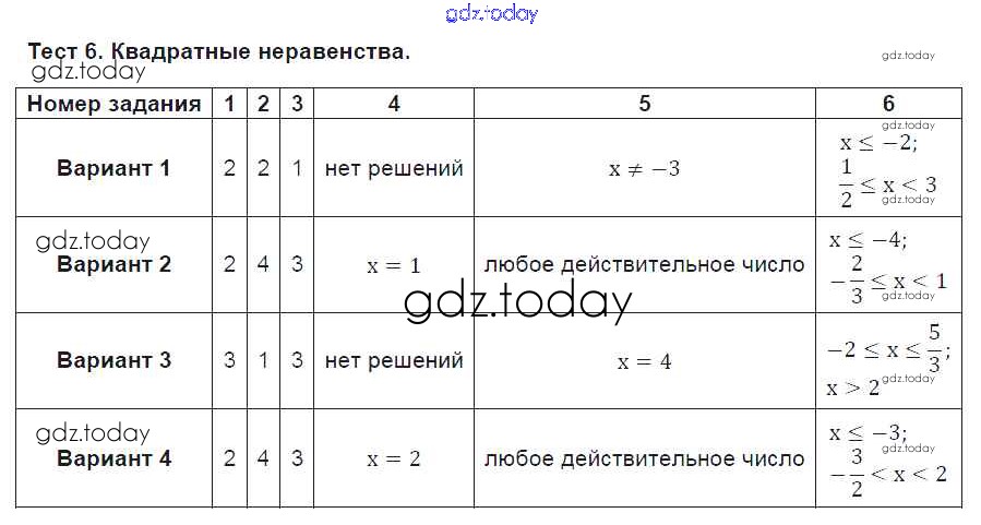 На страницах сайта gdz.today вы найдете учебный и вспомогательный материал, направленный на улучшения знаний школьной программы. ГДЗ - онлайн мир знаний Решение к тестам 6 Тематическим тестам по Алгебре для 8 класса Ткачева Просвещение 2018