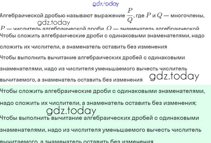 Решение. §3. Сложение и вычитание алгебраических дробей с одинаковыми знаменателями