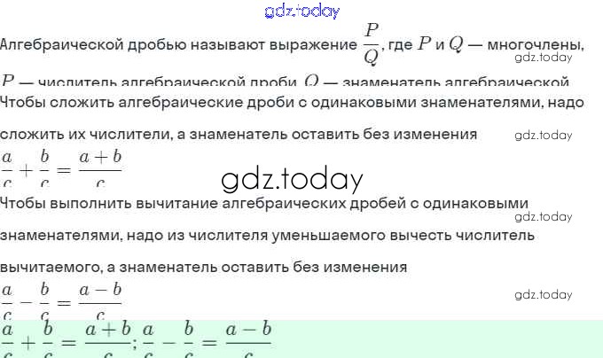 Решение. §3. Сложение и вычитание алгебраических дробей с одинаковыми знаменателями