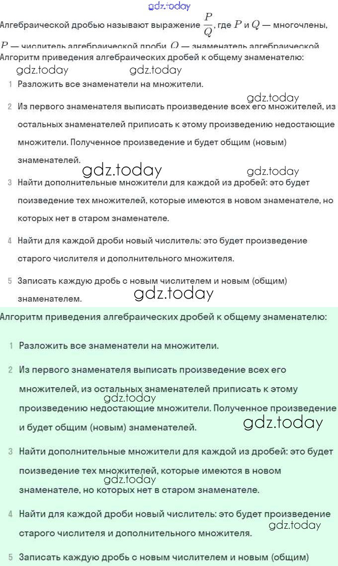 На страницах сайта gdz.today вы найдете учебный и вспомогательный материал, направленный на улучшения знаний школьной программы. ГДЗ - онлайн мир знаний Решение. §4. Сложение и вычитание алгебраических дробей с разными знаменателями 2 Учебнику по Алгебре для 8 класса Мордкович Базовый уровень Мнемозина 2017
