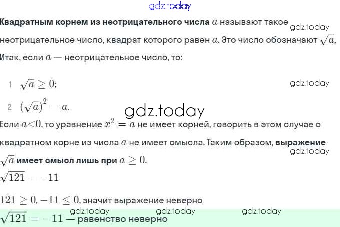 Решение. §11. Понятие квадратного корня из неотрицательного числа