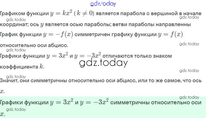На страницах сайта gdz.today вы найдете учебный и вспомогательный материал, направленный на улучшения знаний школьной программы. ГДЗ - онлайн мир знаний Решение. §19. Функция y=kx^2, её свойства и график 4 Учебнику по Алгебре для 8 класса Мордкович Базовый уровень Мнемозина 2017