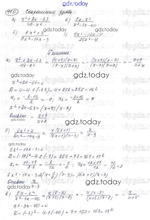 На страницах сайта gdz.today вы найдете учебный и вспомогательный материал, направленный на улучшения знаний школьной программы. ГДЗ - онлайн мир знаний Решение к заданиям для повторения 110 Задачнику по Алгебре для 8 класса Мордкович Углубленный уровень Мнемозина УМК 2016