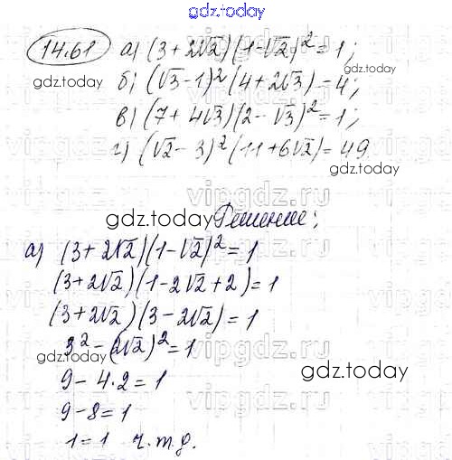 На страницах сайта gdz.today вы найдете учебный и вспомогательный материал, направленный на улучшения знаний школьной программы. ГДЗ - онлайн мир знаний Решение к параграфам 14 61 Задачнику по Алгебре для 8 класса Мордкович Углубленный уровень Мнемозина УМК 2016