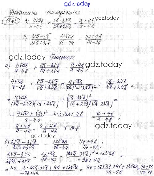 На страницах сайта gdz.today вы найдете учебный и вспомогательный материал, направленный на улучшения знаний школьной программы. ГДЗ - онлайн мир знаний Решение к параграфам 14 65 Задачнику по Алгебре для 8 класса Мордкович Углубленный уровень Мнемозина УМК 2016