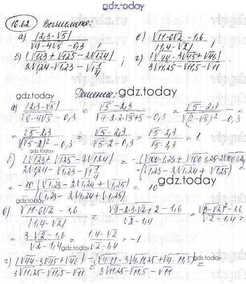 На страницах сайта gdz.today вы найдете учебный и вспомогательный материал, направленный на улучшения знаний школьной программы. ГДЗ - онлайн мир знаний Решение к параграфам 16 62 Задачнику по Алгебре для 8 класса Мордкович Углубленный уровень Мнемозина УМК 2016