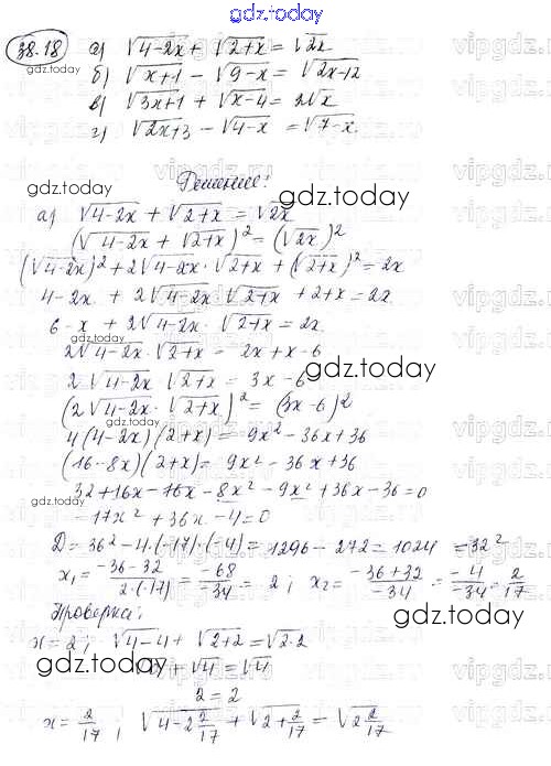 На страницах сайта gdz.today вы найдете учебный и вспомогательный материал, направленный на улучшения знаний школьной программы. ГДЗ - онлайн мир знаний Решение к параграфам 38 18 Задачнику по Алгебре для 8 класса Мордкович Углубленный уровень Мнемозина УМК 2016