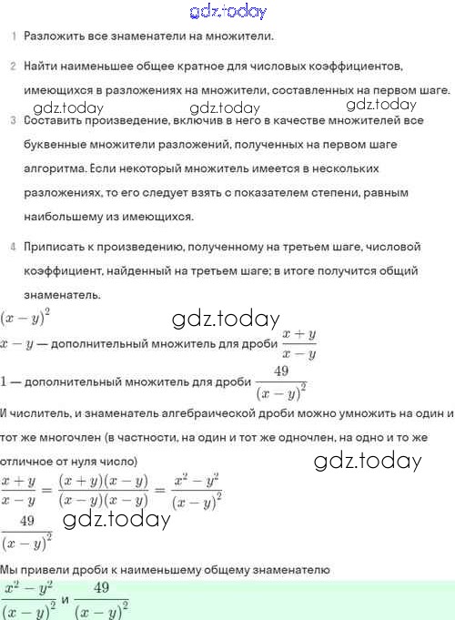 Ответы к Решение. §2. Основное свойство алгебраической дроби 2.31 Задачнику по Алгебре для 8 класса Мордкович, Александрова Базовый уровень Мнемозина 2021