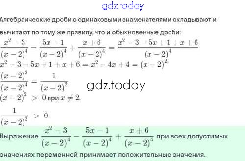 Ответы к Решение. §3. Сложение и вычитание алгебраических дробей с одинаковыми знаменателями 3.27 Задачнику по Алгебре для 8 класса Мордкович, Александрова Базовый уровень Мнемозина 2021