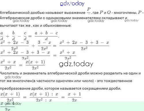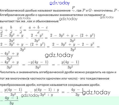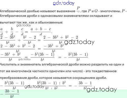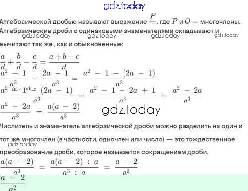На страницах сайта gdz.today вы найдете учебный и вспомогательный материал, направленный на улучшения знаний школьной программы. ГДЗ - онлайн мир знаний Решение. §3. Сложение и вычитание алгебраических дробей с одинаковыми знаменателями 3.5 Задачнику по Алгебре для 8 класса Мордкович, Александрова Базовый уровень Мнемозина 2021