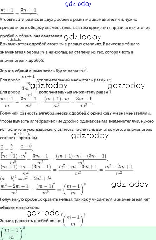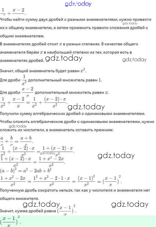 На страницах сайта gdz.today вы найдете учебный и вспомогательный материал, направленный на улучшения знаний школьной программы. ГДЗ - онлайн мир знаний Решение. §4. Сложение и вычитание алгебраических дробей с разными знаменателями 4.16 Задачнику по Алгебре для 8 класса Мордкович, Александрова Базовый уровень Мнемозина 2021