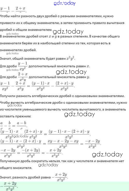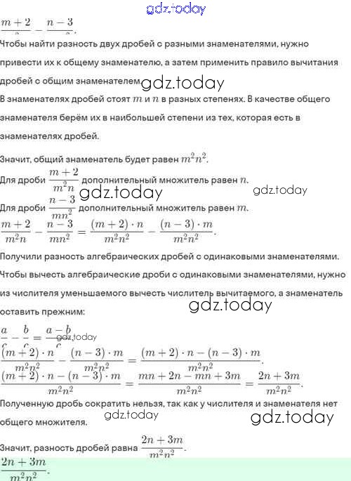 На страницах сайта gdz.today вы найдете учебный и вспомогательный материал, направленный на улучшения знаний школьной программы. ГДЗ - онлайн мир знаний Решение. §4. Сложение и вычитание алгебраических дробей с разными знаменателями 4.18 Задачнику по Алгебре для 8 класса Мордкович, Александрова Базовый уровень Мнемозина 2021