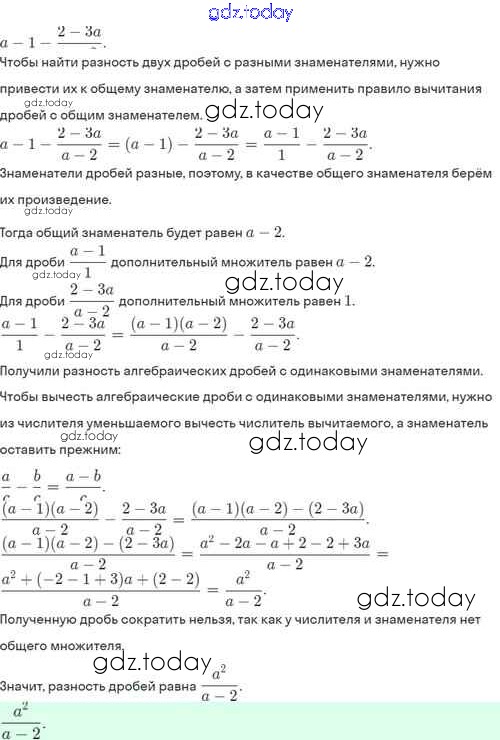На страницах сайта gdz.today вы найдете учебный и вспомогательный материал, направленный на улучшения знаний школьной программы. ГДЗ - онлайн мир знаний Решение. §4. Сложение и вычитание алгебраических дробей с разными знаменателями 4.22 Задачнику по Алгебре для 8 класса Мордкович, Александрова Базовый уровень Мнемозина 2021