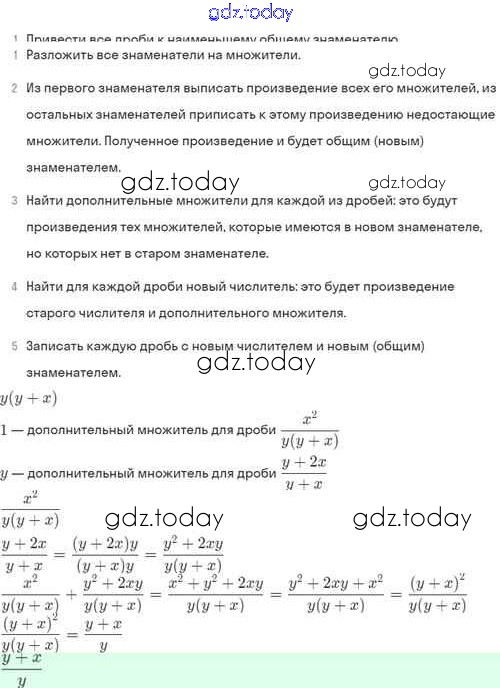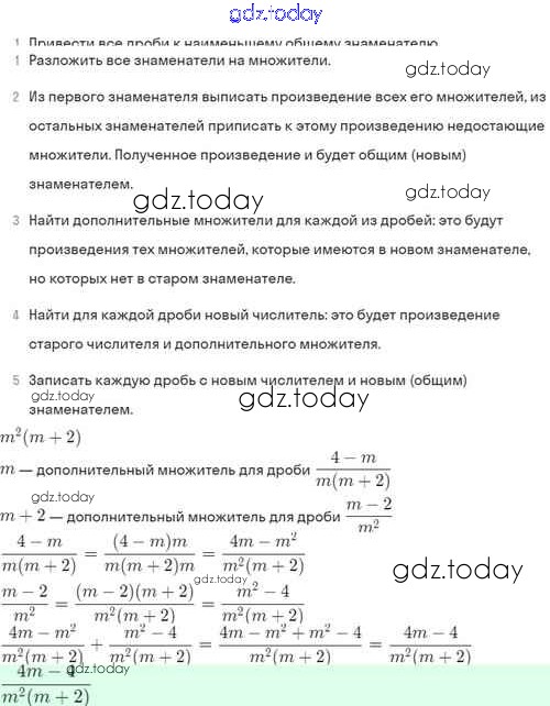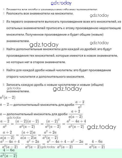 На страницах сайта gdz.today вы найдете учебный и вспомогательный материал, направленный на улучшения знаний школьной программы. ГДЗ - онлайн мир знаний Решение. §4. Сложение и вычитание алгебраических дробей с разными знаменателями 4.25 Задачнику по Алгебре для 8 класса Мордкович, Александрова Базовый уровень Мнемозина 2021