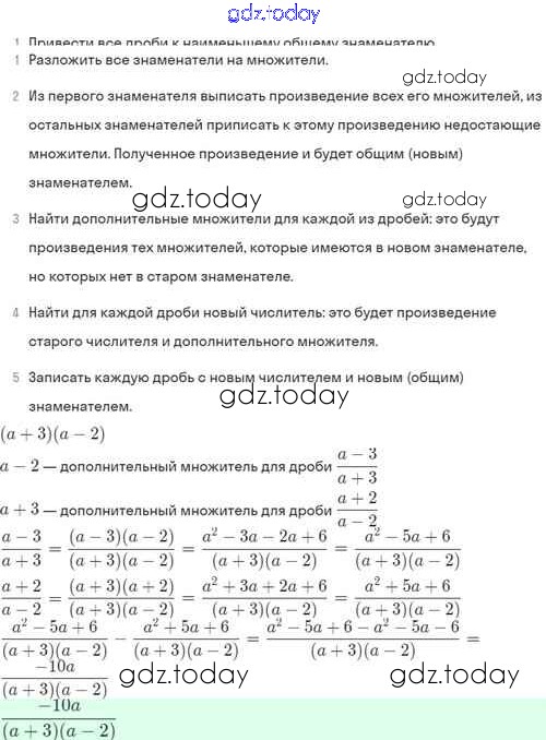 На страницах сайта gdz.today вы найдете учебный и вспомогательный материал, направленный на улучшения знаний школьной программы. ГДЗ - онлайн мир знаний Решение. §4. Сложение и вычитание алгебраических дробей с разными знаменателями 4.29 Задачнику по Алгебре для 8 класса Мордкович, Александрова Базовый уровень Мнемозина 2021