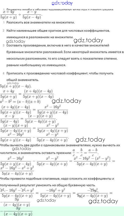 На страницах сайта gdz.today вы найдете учебный и вспомогательный материал, направленный на улучшения знаний школьной программы. ГДЗ - онлайн мир знаний Решение. §4. Сложение и вычитание алгебраических дробей с разными знаменателями 4.30 Задачнику по Алгебре для 8 класса Мордкович, Александрова Базовый уровень Мнемозина 2021