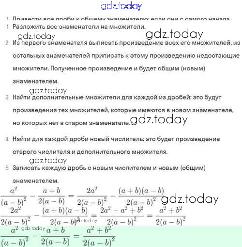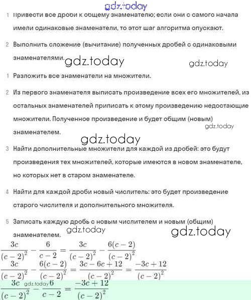 На страницах сайта gdz.today вы найдете учебный и вспомогательный материал, направленный на улучшения знаний школьной программы. ГДЗ - онлайн мир знаний Решение. §4. Сложение и вычитание алгебраических дробей с разными знаменателями 4.34 Задачнику по Алгебре для 8 класса Мордкович, Александрова Базовый уровень Мнемозина 2021