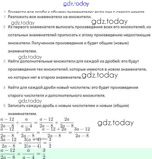 На страницах сайта gdz.today вы найдете учебный и вспомогательный материал, направленный на улучшения знаний школьной программы. ГДЗ - онлайн мир знаний Решение. §4. Сложение и вычитание алгебраических дробей с разными знаменателями 4.36 Задачнику по Алгебре для 8 класса Мордкович, Александрова Базовый уровень Мнемозина 2021