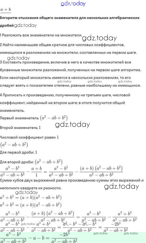 На страницах сайта gdz.today вы найдете учебный и вспомогательный материал, направленный на улучшения знаний школьной программы. ГДЗ - онлайн мир знаний Решение. §4. Сложение и вычитание алгебраических дробей с разными знаменателями 4.47 Задачнику по Алгебре для 8 класса Мордкович, Александрова Базовый уровень Мнемозина 2021