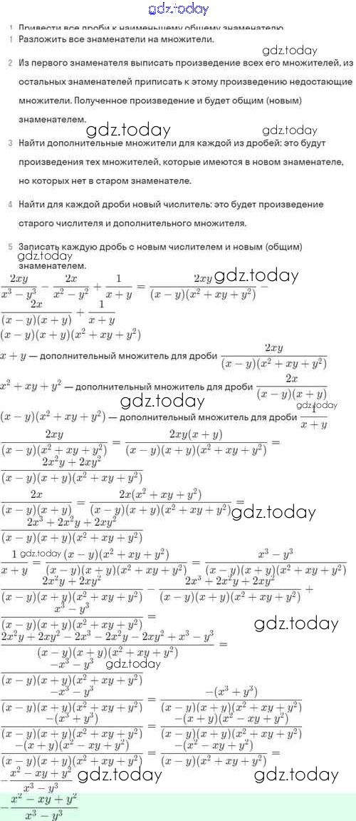 На страницах сайта gdz.today вы найдете учебный и вспомогательный материал, направленный на улучшения знаний школьной программы. ГДЗ - онлайн мир знаний Решение. §4. Сложение и вычитание алгебраических дробей с разными знаменателями 4.51 Задачнику по Алгебре для 8 класса Мордкович, Александрова Базовый уровень Мнемозина 2021
