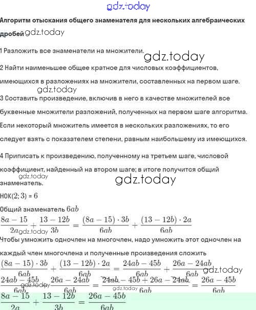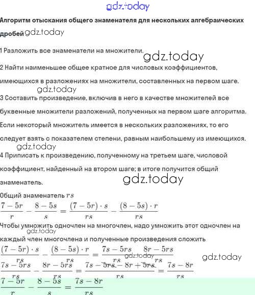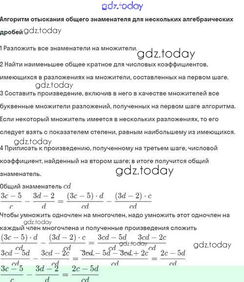 На страницах сайта gdz.today вы найдете учебный и вспомогательный материал, направленный на улучшения знаний школьной программы. ГДЗ - онлайн мир знаний Решение. §4. Сложение и вычитание алгебраических дробей с разными знаменателями 4.7 Задачнику по Алгебре для 8 класса Мордкович, Александрова Базовый уровень Мнемозина 2021