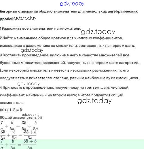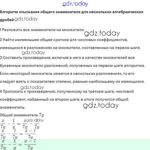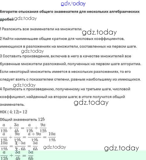 На страницах сайта gdz.today вы найдете учебный и вспомогательный материал, направленный на улучшения знаний школьной программы. ГДЗ - онлайн мир знаний Решение. §4. Сложение и вычитание алгебраических дробей с разными знаменателями 4.8 Задачнику по Алгебре для 8 класса Мордкович, Александрова Базовый уровень Мнемозина 2021