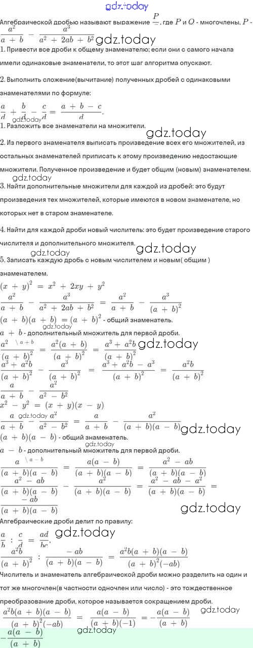 На страницах сайта gdz.today вы найдете учебный и вспомогательный материал, направленный на улучшения знаний школьной программы. ГДЗ - онлайн мир знаний Решение. §6. Преобразование рациональных выражений 6.11 Задачнику по Алгебре для 8 класса Мордкович, Александрова Базовый уровень Мнемозина 2021