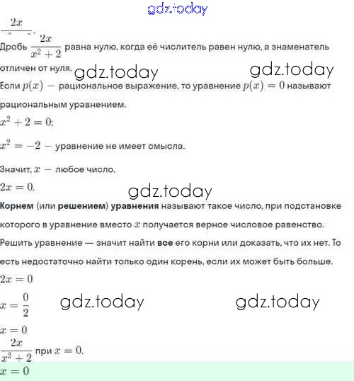 На страницах сайта gdz.today вы найдете учебный и вспомогательный материал, направленный на улучшения знаний школьной программы. ГДЗ - онлайн мир знаний Решение. §7. Первые представления о рациональных уравнениях 7.1 Задачнику по Алгебре для 8 класса Мордкович, Александрова Базовый уровень Мнемозина 2021