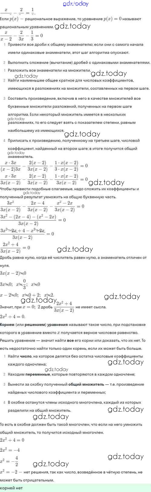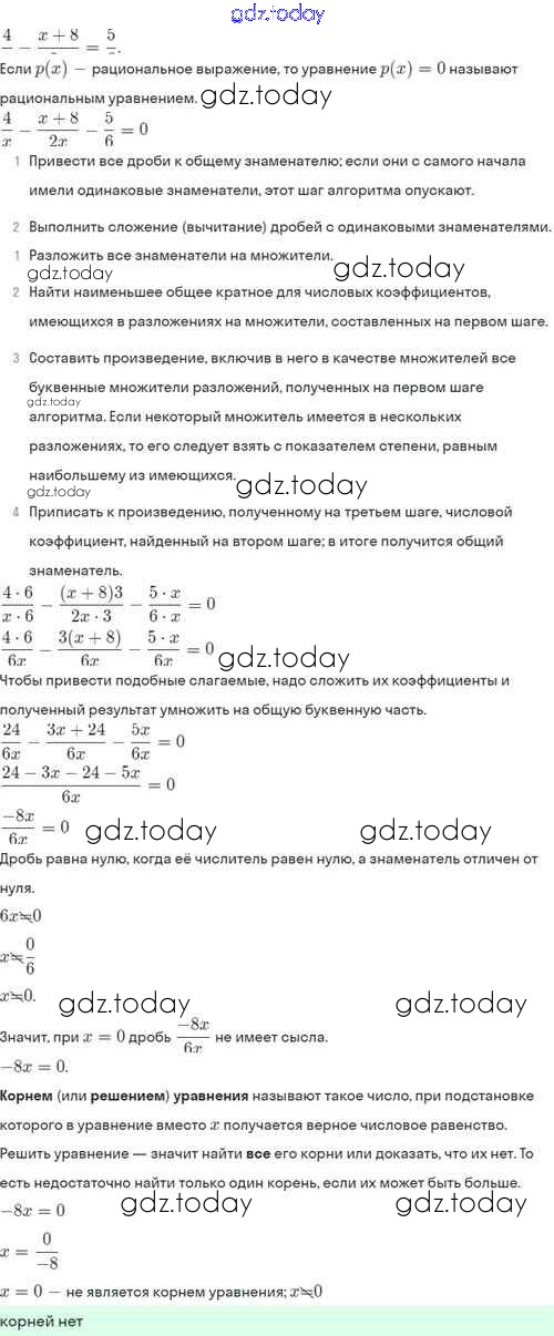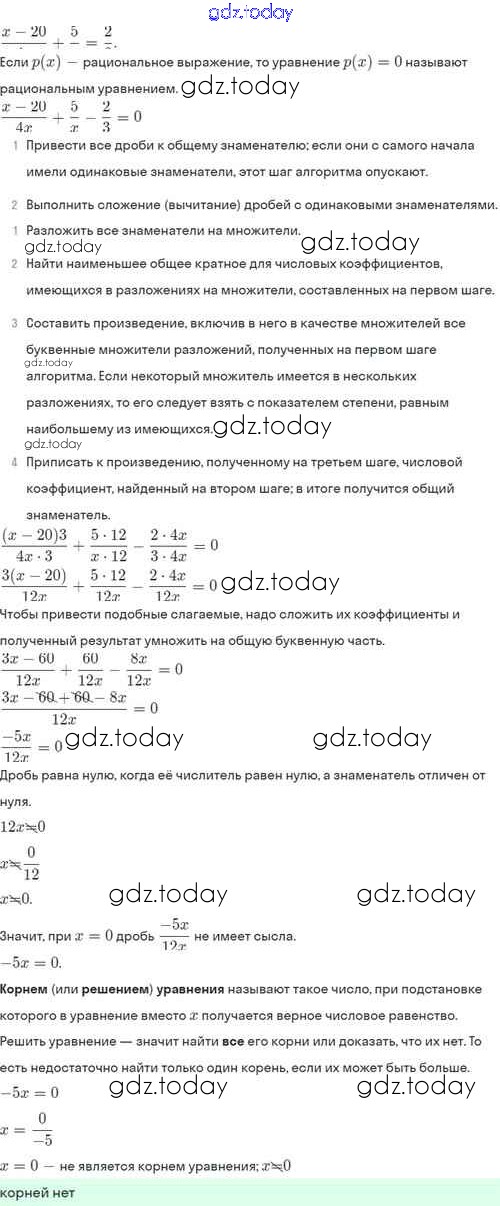 На страницах сайта gdz.today вы найдете учебный и вспомогательный материал, направленный на улучшения знаний школьной программы. ГДЗ - онлайн мир знаний Решение. §7. Первые представления о рациональных уравнениях 7.20 Задачнику по Алгебре для 8 класса Мордкович, Александрова Базовый уровень Мнемозина 2021