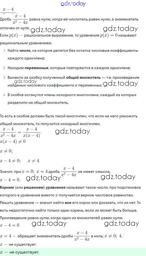 На страницах сайта gdz.today вы найдете учебный и вспомогательный материал, направленный на улучшения знаний школьной программы. ГДЗ - онлайн мир знаний Решение. §7. Первые представления о рациональных уравнениях 7.4 Задачнику по Алгебре для 8 класса Мордкович, Александрова Базовый уровень Мнемозина 2021