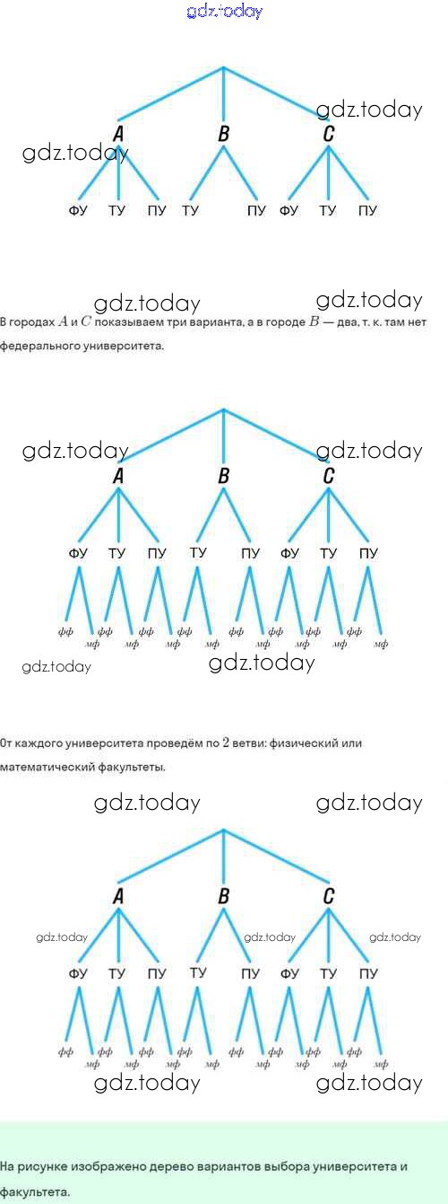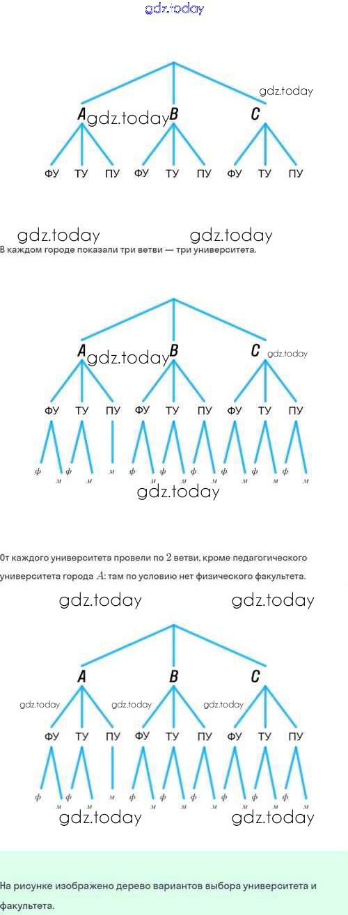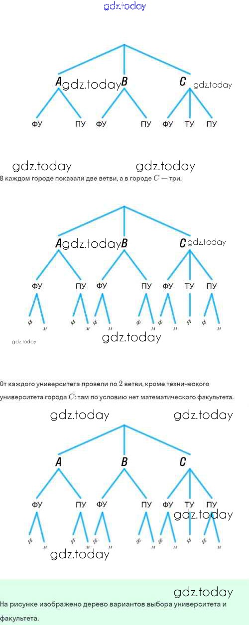 Ответы к Решение. §9. Комбинаторные и вероятностные задачи. Дерево вариантов и правило нахождения вероятности 9.5 Задачнику по Алгебре для 8 класса Мордкович, Александрова Базовый уровень Мнемозина 2021