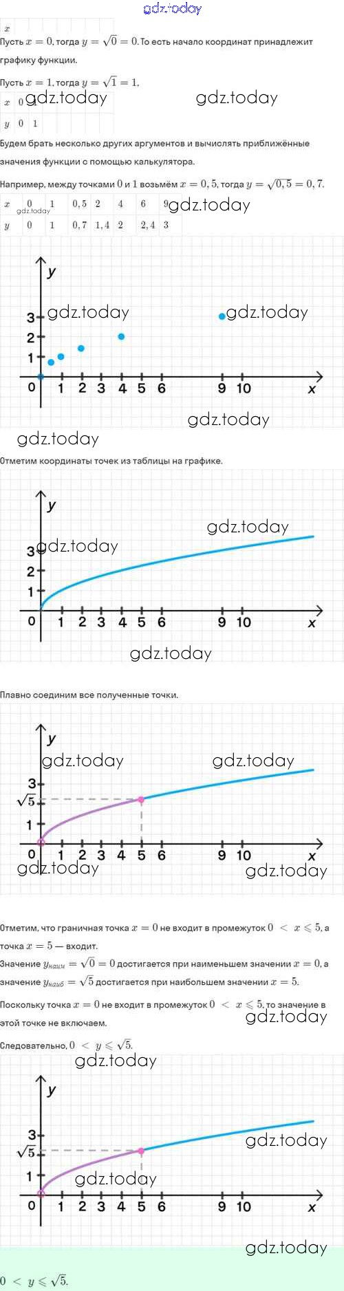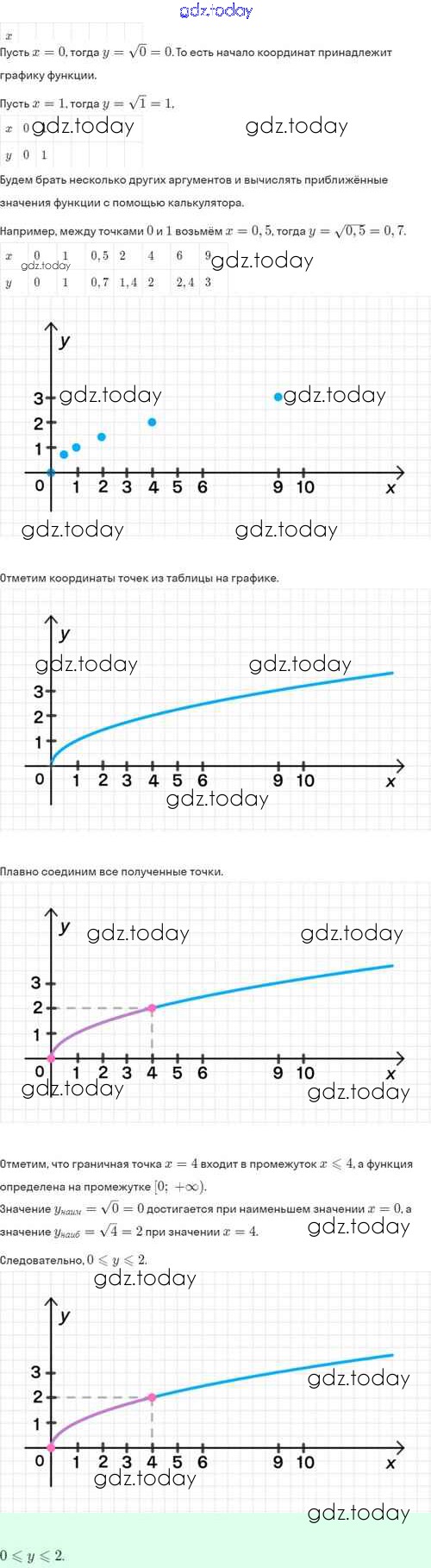 На страницах сайта gdz.today вы найдете учебный и вспомогательный материал, направленный на улучшения знаний школьной программы. ГДЗ - онлайн мир знаний Решение. §14. Функция y=√х, её свойства и график 14.25 Задачнику по Алгебре для 8 класса Мордкович, Александрова Базовый уровень Мнемозина 2021