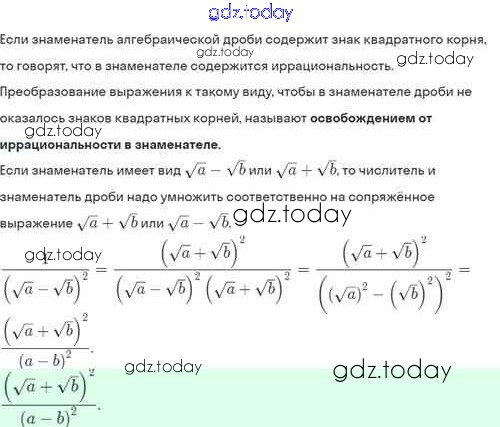 На страницах сайта gdz.today вы найдете учебный и вспомогательный материал, направленный на улучшения знаний школьной программы. ГДЗ - онлайн мир знаний Решение. §16. Преобразование выражений, содержащих операцию извлечения квадратного корня 16.42 Задачнику по Алгебре для 8 класса Мордкович, Александрова Базовый уровень Мнемозина 2021