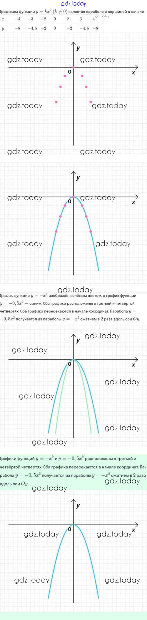На страницах сайта gdz.today вы найдете учебный и вспомогательный материал, направленный на улучшения знаний школьной программы. ГДЗ - онлайн мир знаний Решение. §19. Функция y=kx², её свойства и график 19.10 Задачнику по Алгебре для 8 класса Мордкович, Александрова Базовый уровень Мнемозина 2021