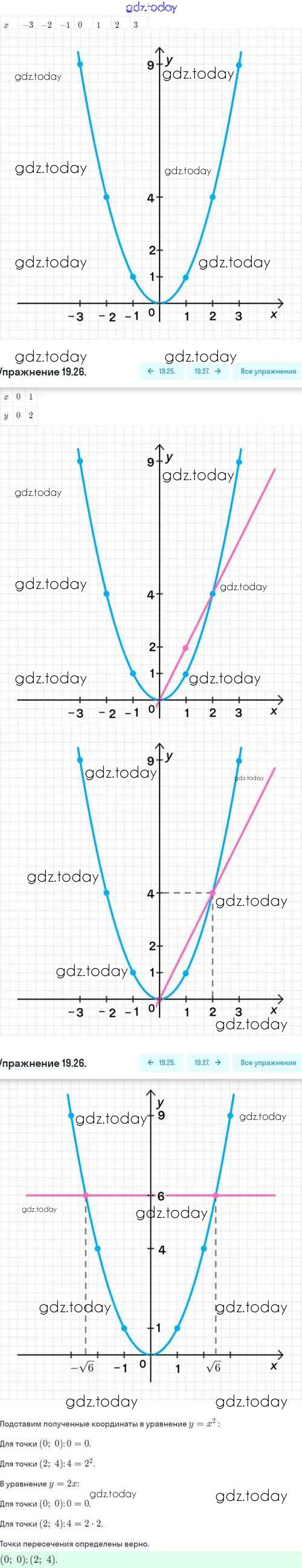 Ответы к Решение. §19. Функция y=kx², её свойства и график 19.26 Задачнику по Алгебре для 8 класса Мордкович, Александрова Базовый уровень Мнемозина 2021